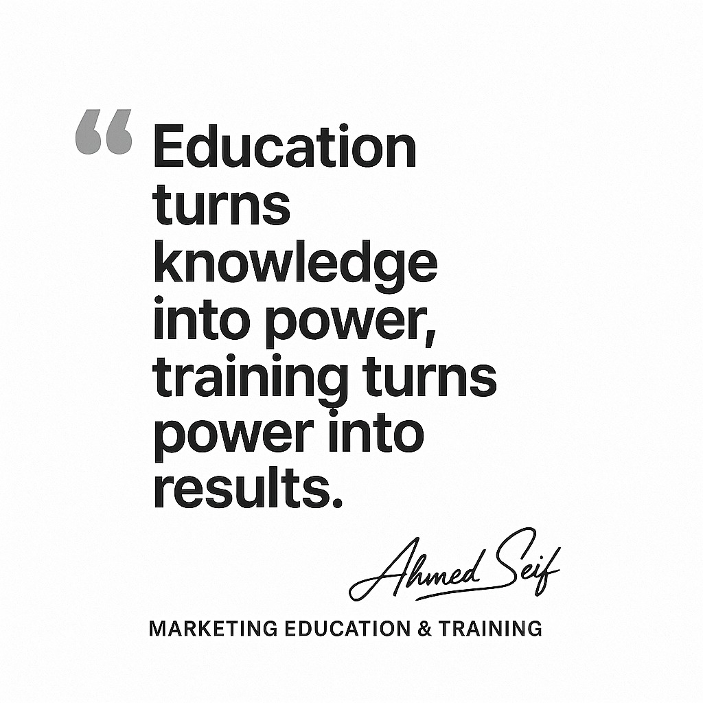 Ahmed Seif is a marketing consultant and trainer with 10+ years of experience in marketing, sales, and content strategy. He holds a Bachelor’s in Marketing from Alexandria University, a CIM Master in Marketing (UK), and is a Certified Trainer (TOT) from the Arab Academy for Science & Technology.